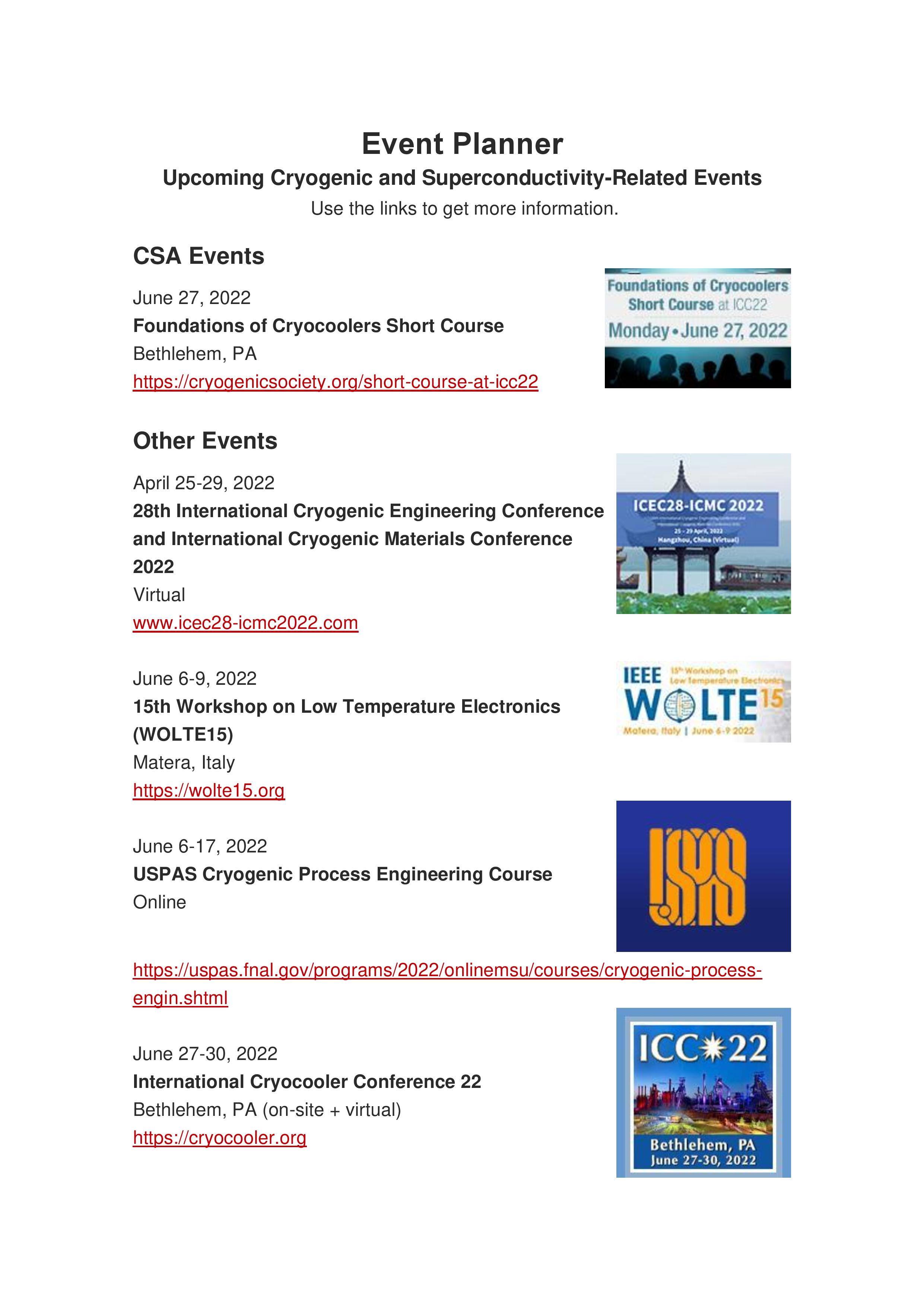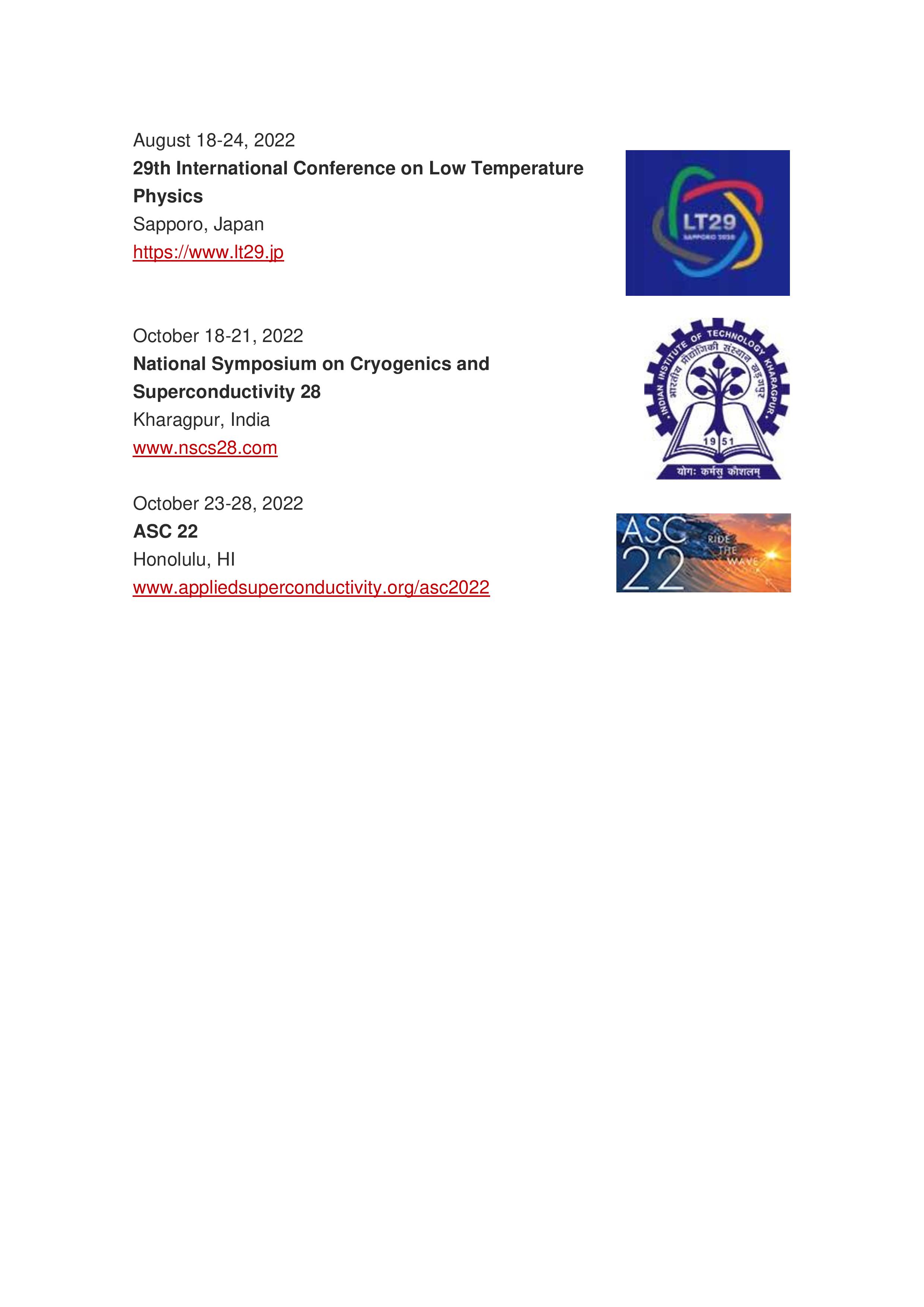 Event Planner Upcoming Cryogenic and Superconductivity-Related Events Scroll down to download the pdf file............. Cryogenics Events-page-001.jpg Cryogenics Events-page-002.jpg Cryogenics Events.pdf Cryogenics Events.pdf News and Events Tags: Events Share