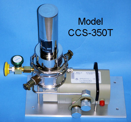 The compact CCS-350T offers the same large 1.5 in diameter sample mounting area as the standard model, but with reduced radiation shield and vacuum jacket diameters.